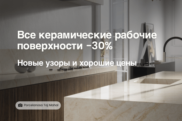 Сейчас самое время обновить кухню, ведь до конца июля все керамические поверхности в Granitop дешевле на 30%. Ознакомьтесь с нашим широким выбором и найдите свой любимый!