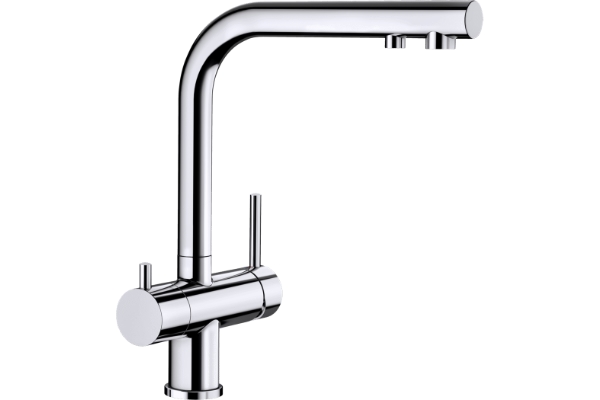 Практичный смеситель 3-в-1 для подачи холодной, горячей и фильтрованной воды. Раздельные каналы подачи воды гарантируют, что фильтрованная вода не смешивается с водопроводной. Отдельный рычаг для фильтрованной воды расположен слева. Высокий излив и полный угол вращения обеспечивают максимальное удобство использования.