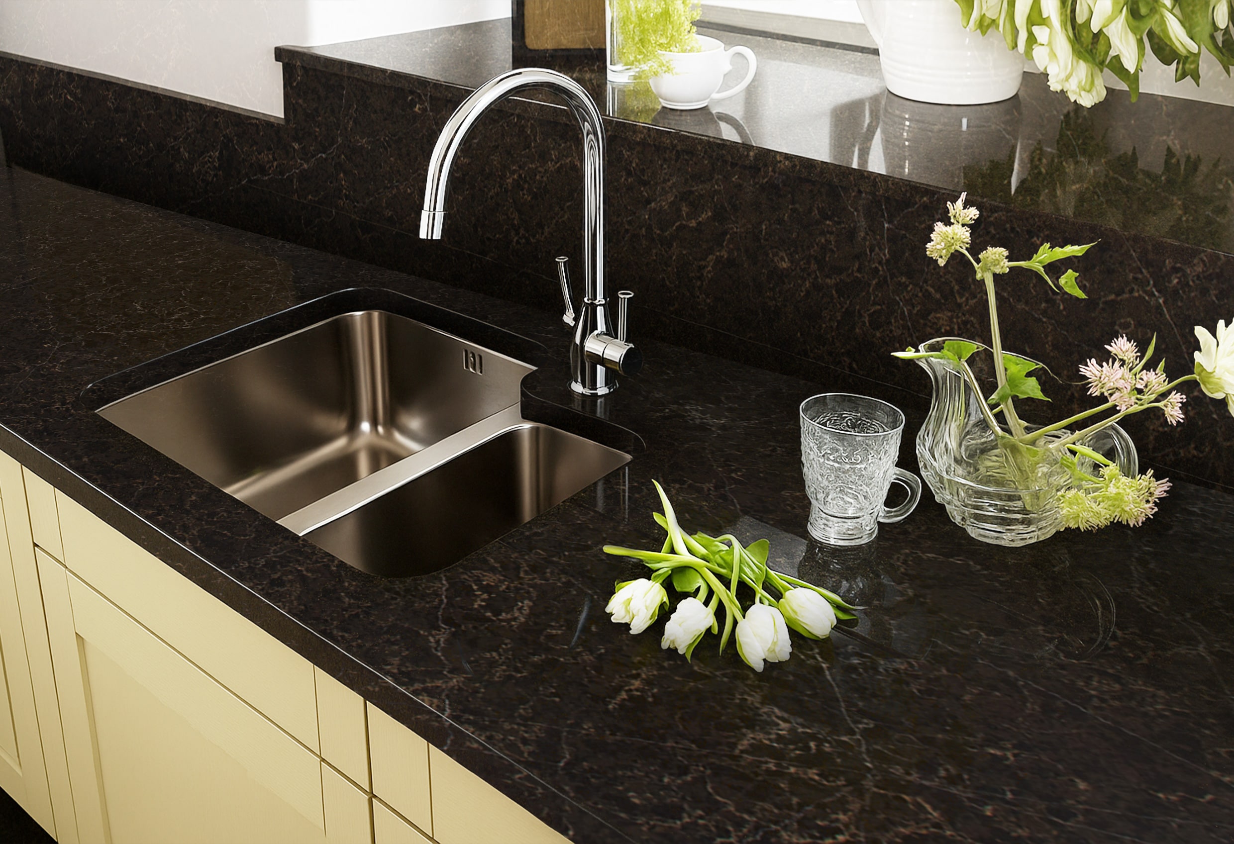 Идеально гладкая поверхность без пор обеспечивает высокую гигиеничность, предотвращая скопление и размножение бактерий. Уход за столешницей максимально прост: достаточно протереть её влажной тканью, чтобы вернуть первозданный вид.
