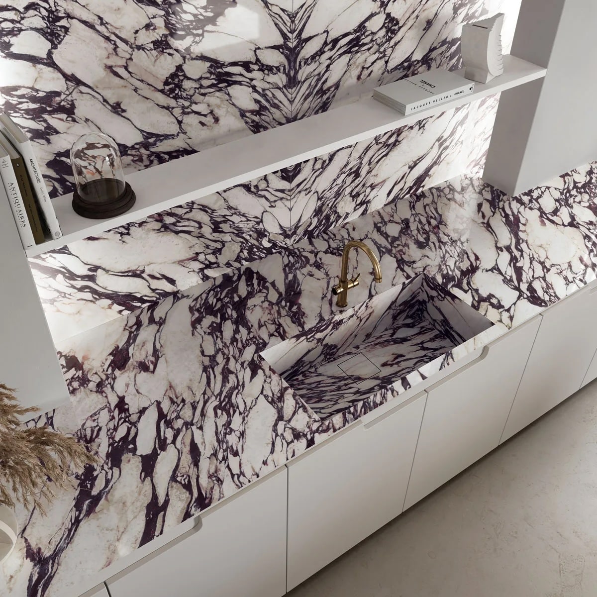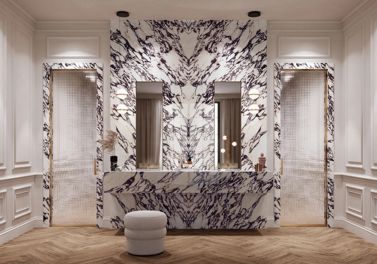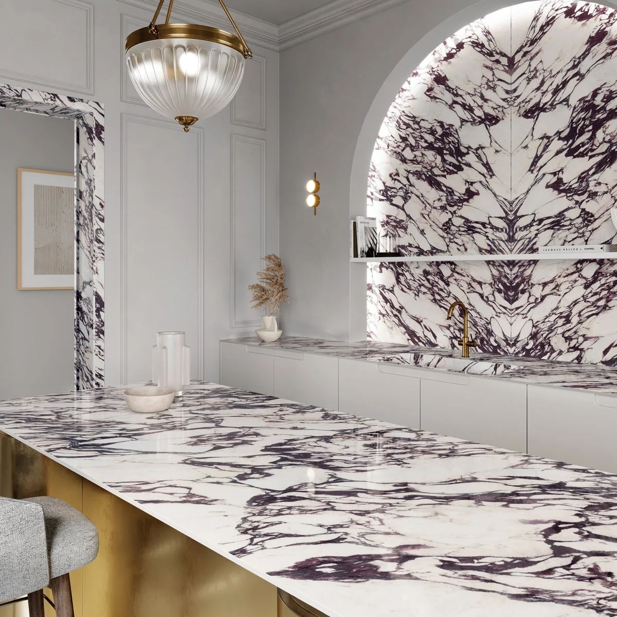 Этот керамический материал гармонично сочетает в себе великолепную эстетику натурального камня с лучшими эксплуатационными характеристиками современных материалов. Это идеальный выбор для требовательных клиентов и роскошных интерьеров: столешница обладает культовым внешним видом настоящего мрамора Calacatta Viola, оставаясь при этом исключительно прочной, устойчивой к пятнам и невероятно простой в повседневном уходе.