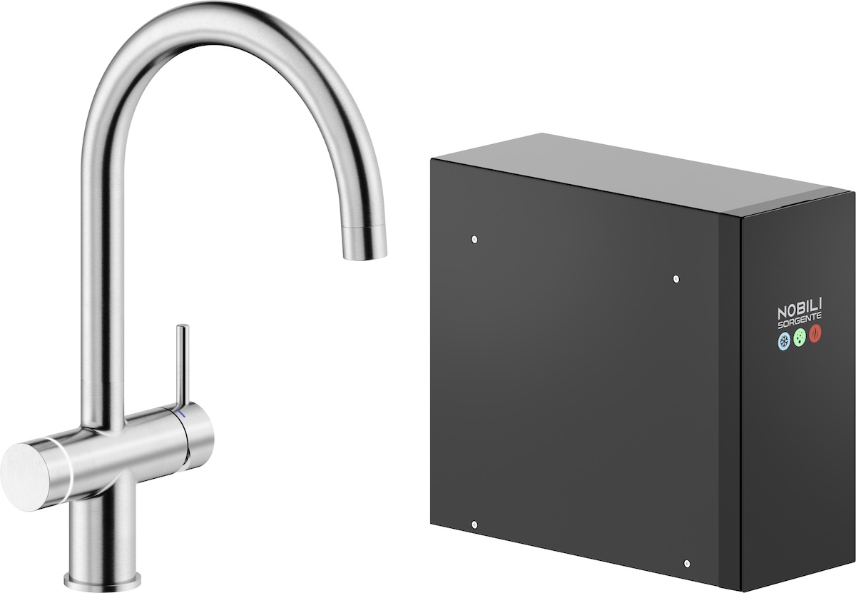 Многофункциональный смеситель Nobili ALL IN 1 для кухни объединяет стандартный кран, систему фильтрации, охлаждение, газирование и систему быстрого нагрева воды. Это умное решение позволяет получать обычную водопроводную воду, фильтрованную воду, холодную газированную воду или воду 99 °C через один кран. Элегантный дизайн смесителя и несколько вариантов отделки идеально вписываются в современную кухню, экономя ценное место на рабочей поверхности. Энергоэффективное решение, заменяющее чайник и бутилированную воду.
